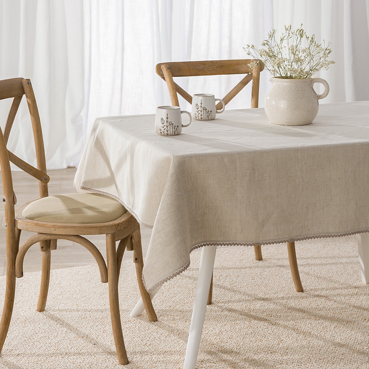 Obrus lniany z koronką
